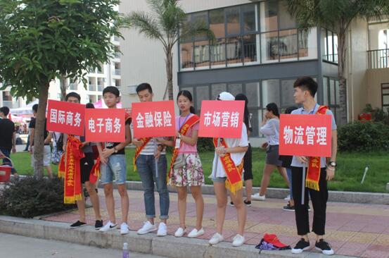 迎新当天早上八点开始,新生们就陆续坐着校车,或者乘坐自家的小汽车来到学校报到。两委们分为两批行动,一部分两委负责在下车点举起我们经贸系的大旗,将经贸系的新生迎接到经贸系报到登记处的帐篷。而另一批两委则负责在报到处的帐篷里统计新生的数据。报到完后由学长们带着前往他们的宿舍楼并贴心的帮他们提行李。这天学长学姐与新生交流在校的心得体会,同时与新生打成一片,与新生其乐融融。